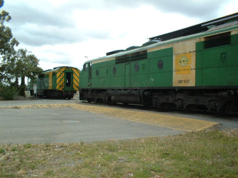 few vintage GM class units, including Commonwealth Railways liveried unit GM1.